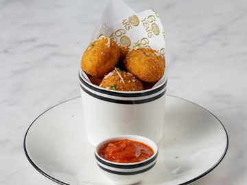 حصة مزدوجة من وجبة كرات العجين الشهيرة، تقدم مع البيستو روسو, زبدة الثوم وصلصة بيستو